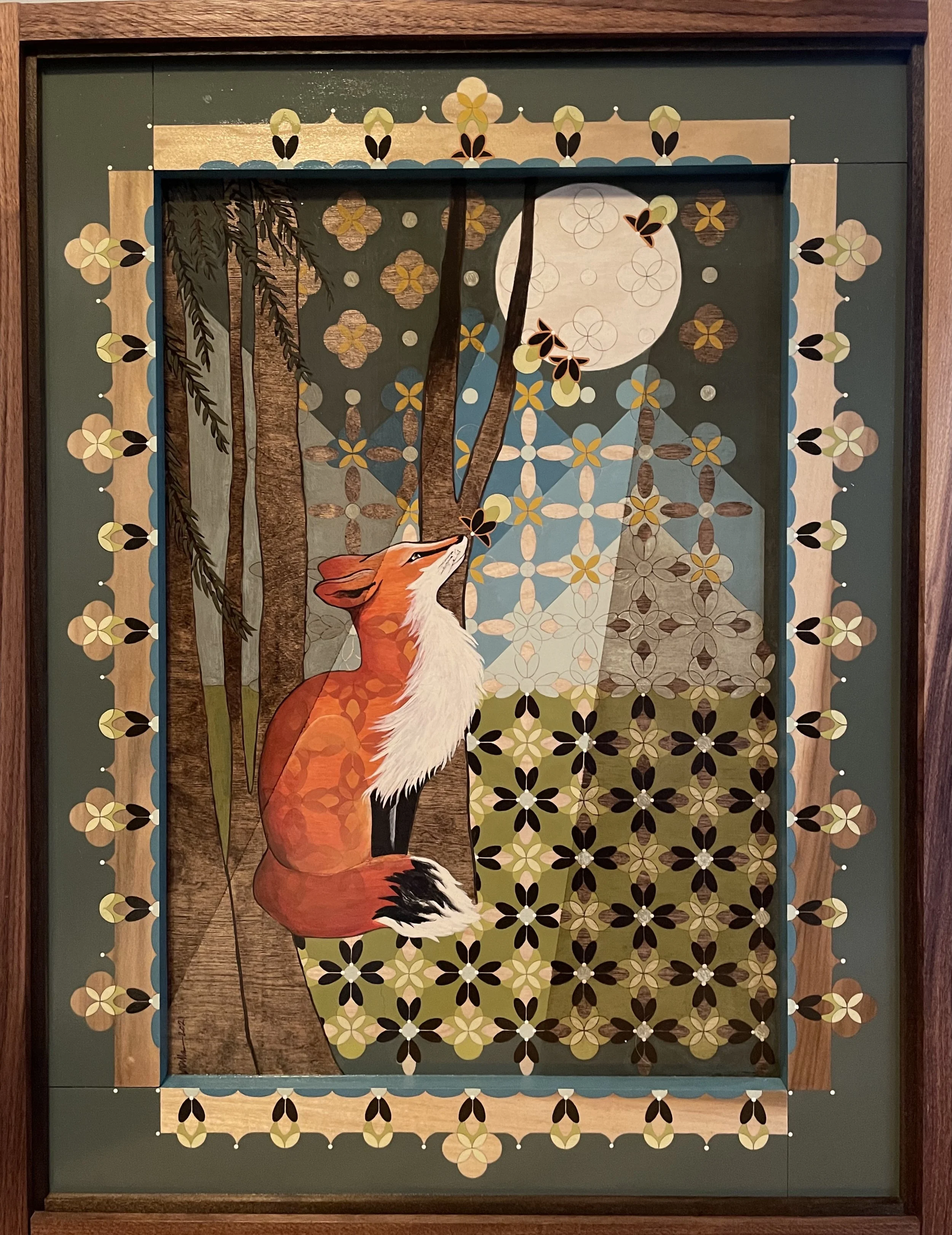 oil, acrylic, dye and stain on poplar 12”x 18”x 1.5”